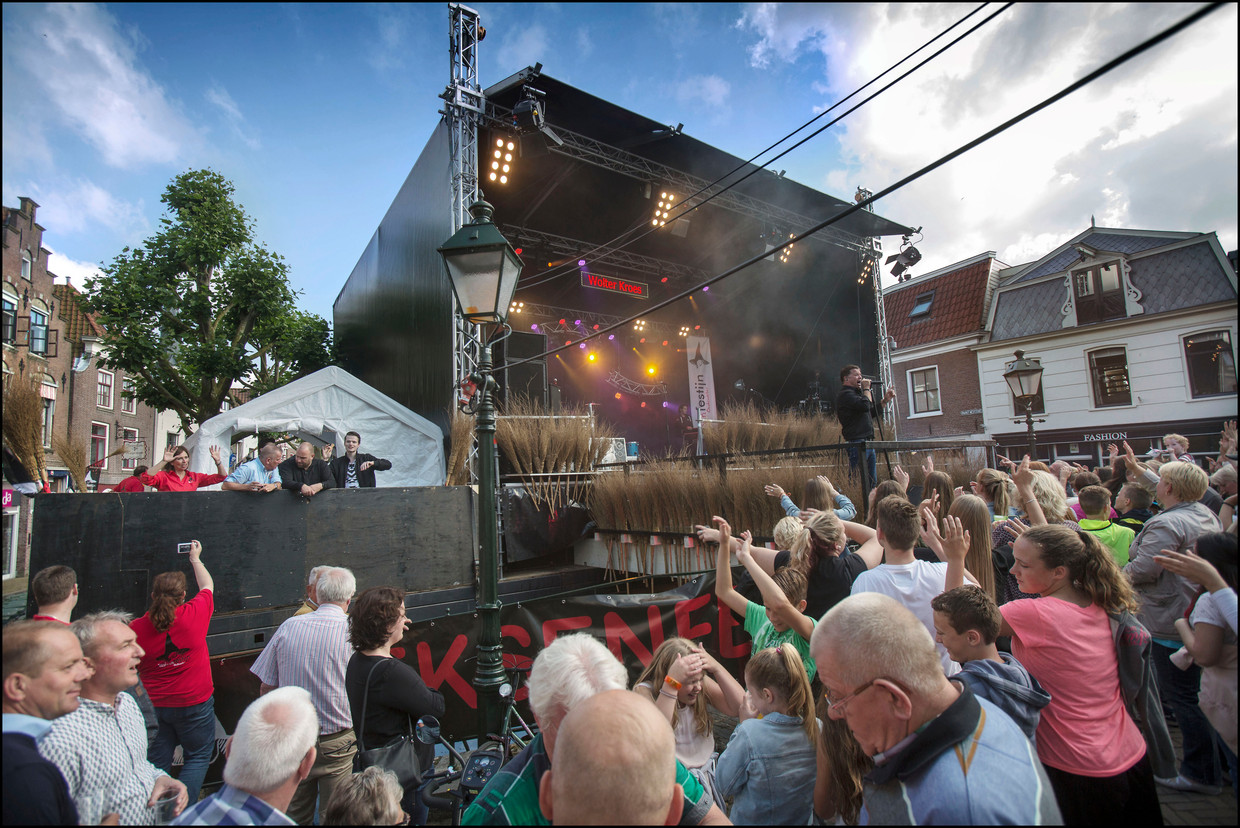 dat podium in feite over de gracht gebouwd is. Ook de partytent met de
