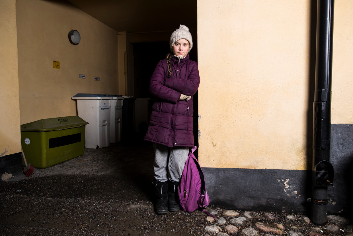 Het was 20 augustus 2018 toen Thunberg voor het eerst in haar eentje op de grond ging zitten bij het Zweedse parlementsgebouw in Stockholm. Naast haar een zelfgemaakt bord met ‘Skolstrejk för klimatet’ erop. Inmiddels is een rivier naar haar genoemd. En een spin. Een Britse school heeft haar portret over de volle lengte op het sportveld geverfd, in steden over heel de wereld bestaan muurschilderingen van haar. Ze heeft haar eigen Spitting Image-pop en figureert als helderziende in een videoclip van Pearl Jam. Op internet wordt ze meer besproken dan Angela Merkel of Cardi B. Een mode-icoon wordt ze ook genoemd. Of juist een voorbeeld voor vrouwen die puur op inhoud willen worden beoordeeld. En zij, zij voelt slechts ongemak bij alle belangstelling voor haar persoon. ‘Het frustreert me dat media alleen op mij zijn gericht’, zegt ze tegen The New Scientist. ‘In plaats van staatshoofden en ceo’s ter verantwoording te roepen, schrijven ze over mij.’