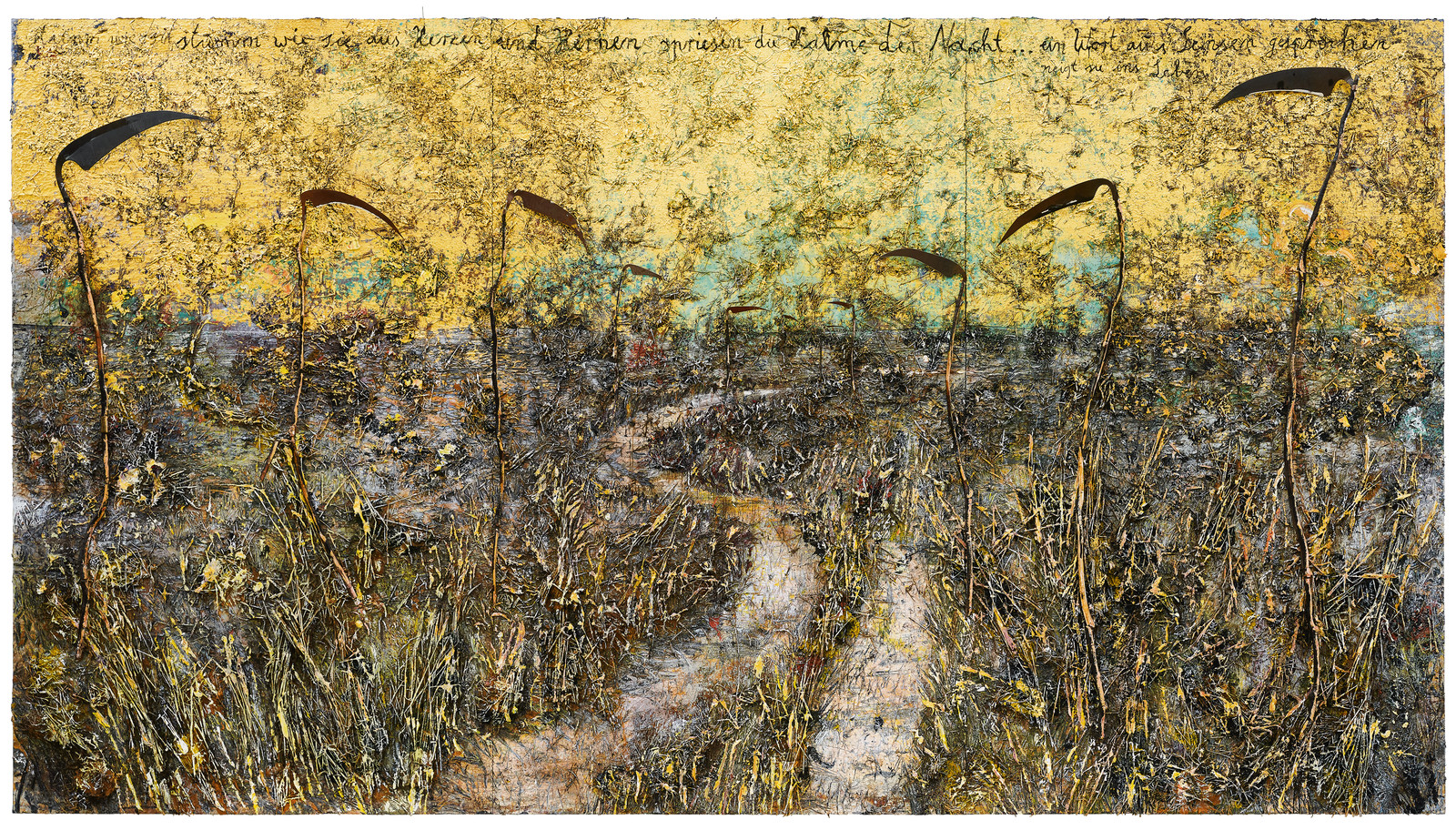 Terwijl alle grassprieten op het gazon van museum Voorlinden in het gelid lijken te staan, is er binnen sprake van geregisseerde chaos. Een museumzaal staat vol met manshoge graanstengels, er ligt zand op het parket. De dode sprieten steken alle kanten uit, sommige liggen bijna plat. Het is een kunstwerk van Anselm Kiefer. De graanstengels zijn niet echt, ze bestaan uit ijzerdraad, touw, gips en nog veel meer. De aren zijn bedekt met goudverf.